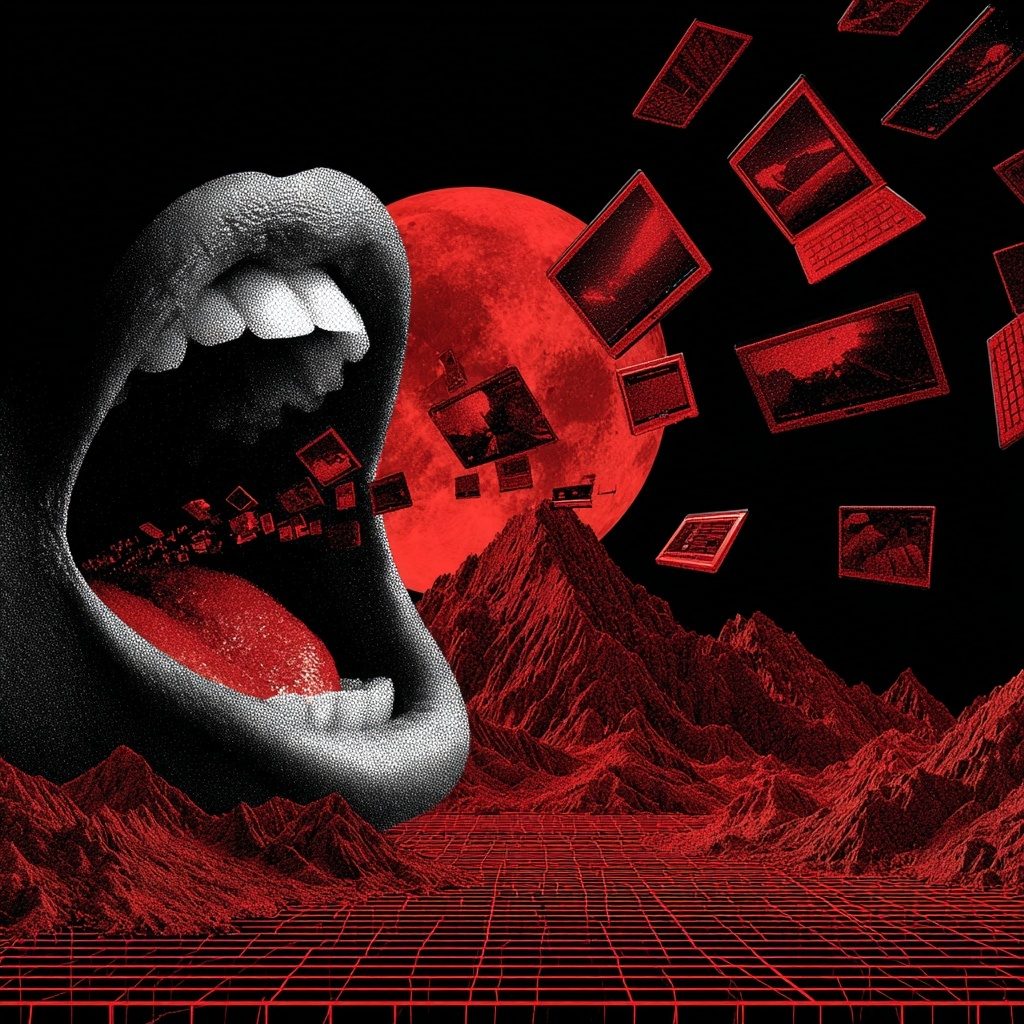 ÅTERFÖDELSEN is a journey inward. You enter through the mouth — overwhelmed, bombarded, drowning in the chaos of the world as it streams toward you. You smash through it. And in the wreckage you find a beating heart.